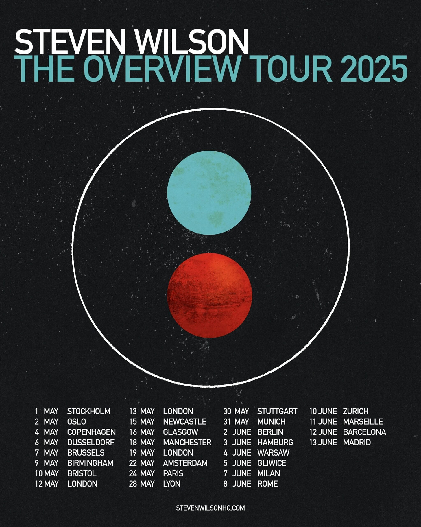 I’m thrilled to be able to announce a Steven Wilson tour for 2025, my first for 7 years. The Overview Tour will be an audio-visual experience based around a forthcoming new release of the same name: a space themed album that features just two long pieces. I’ll also be playing music from The Harmony Codex for the first time as well as songs from all of my previous records. I’m incredibly happy to be performing again with my inspirational solo band, and we have a lot of lost time to make up. I look forward to seeing you at what will be an epic evening!