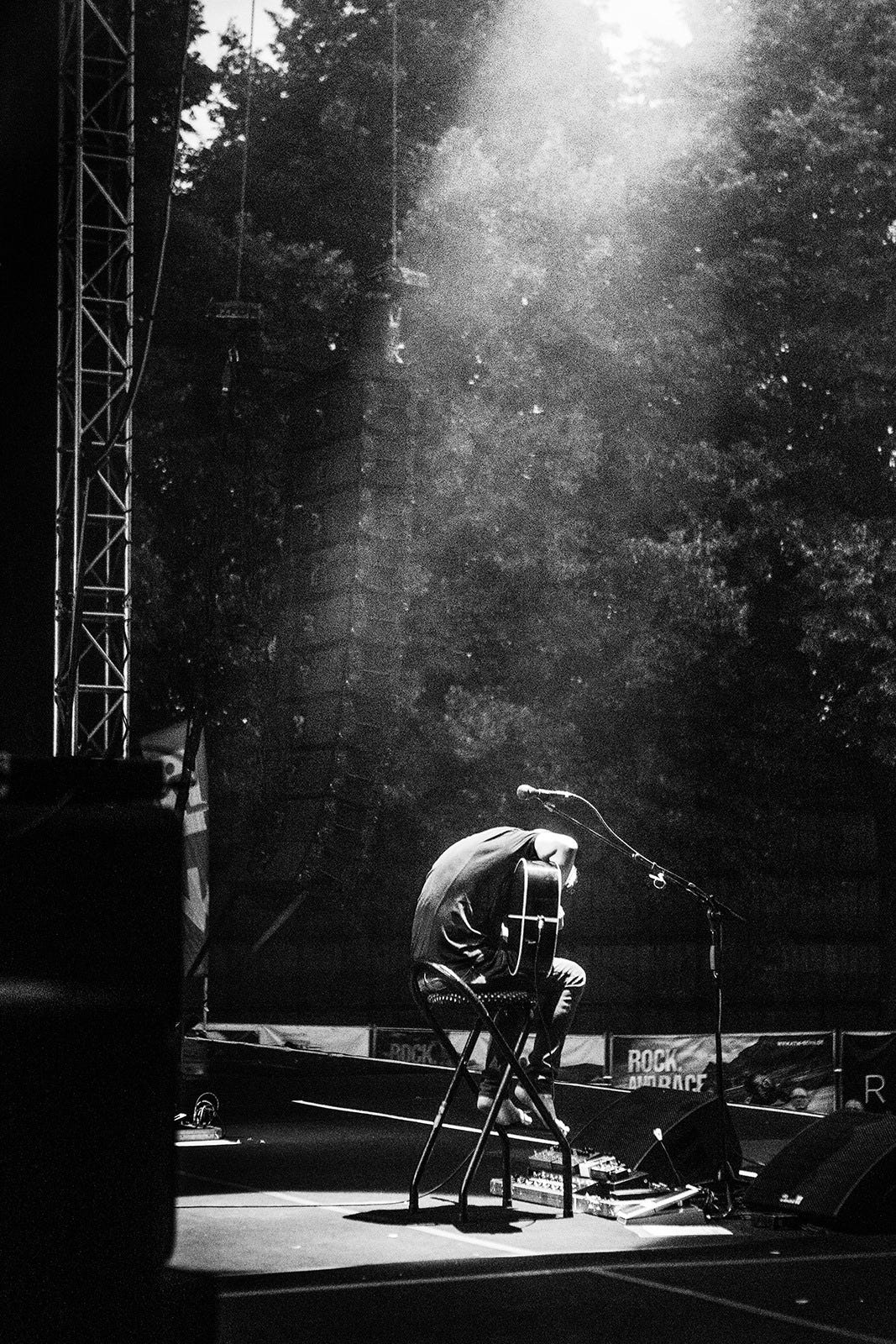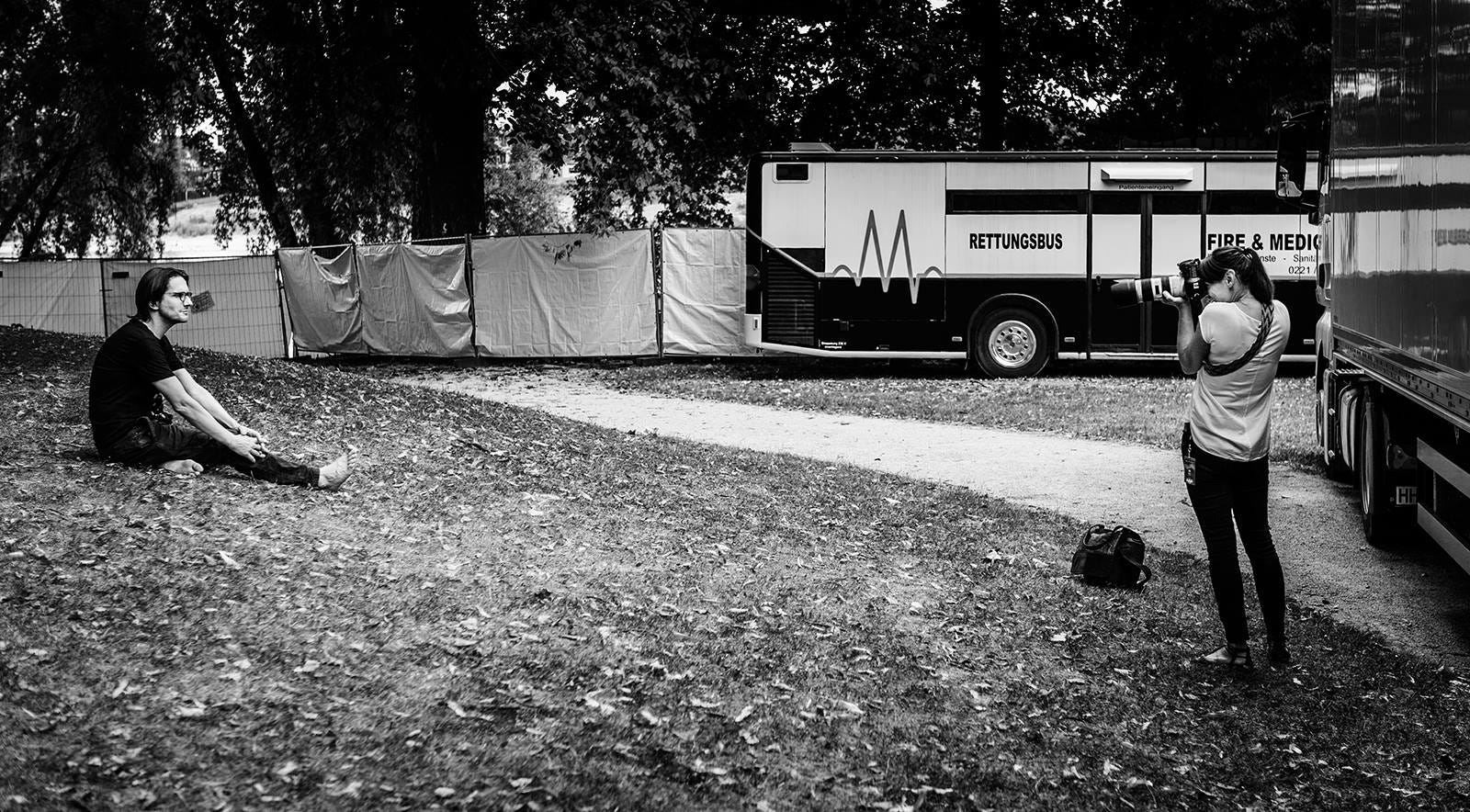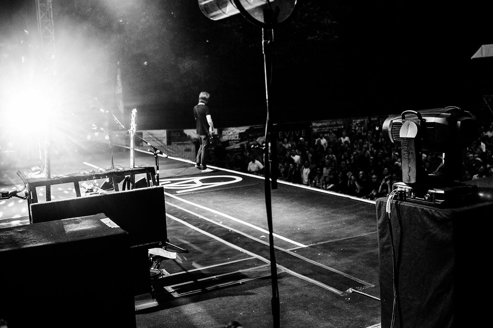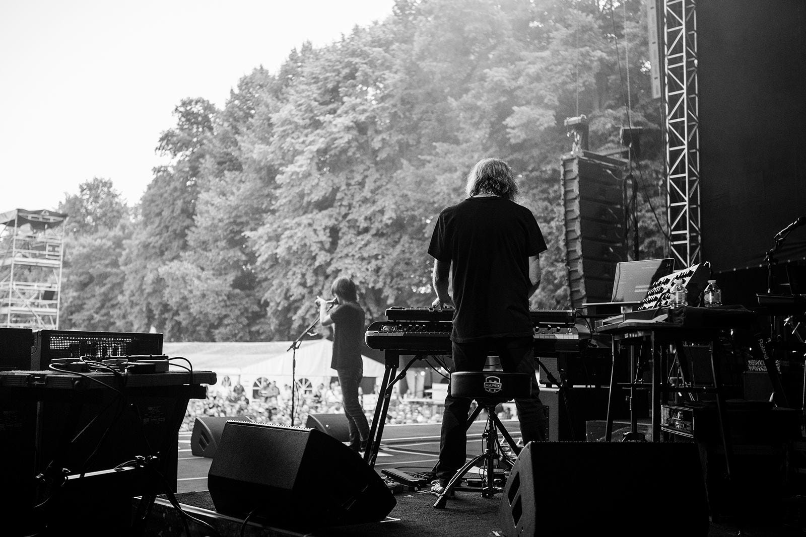 Hajo Mueller captured some special moments before and during the Kunst!Rasen open air show in Bonn last week. After being glorious weather during the day, a storm arrived in the evening, resulting in the band performing to a sea of pink kagools - but still a great time was had by all, thanks to the audience for not allowing the weather to dampen their enthusiasm!