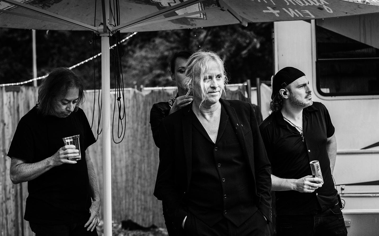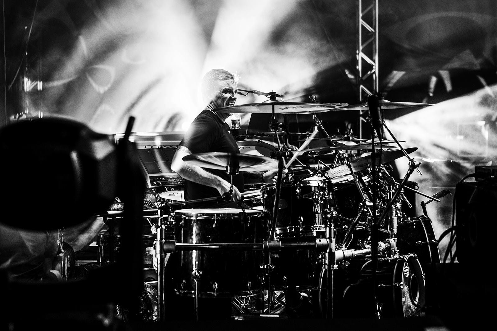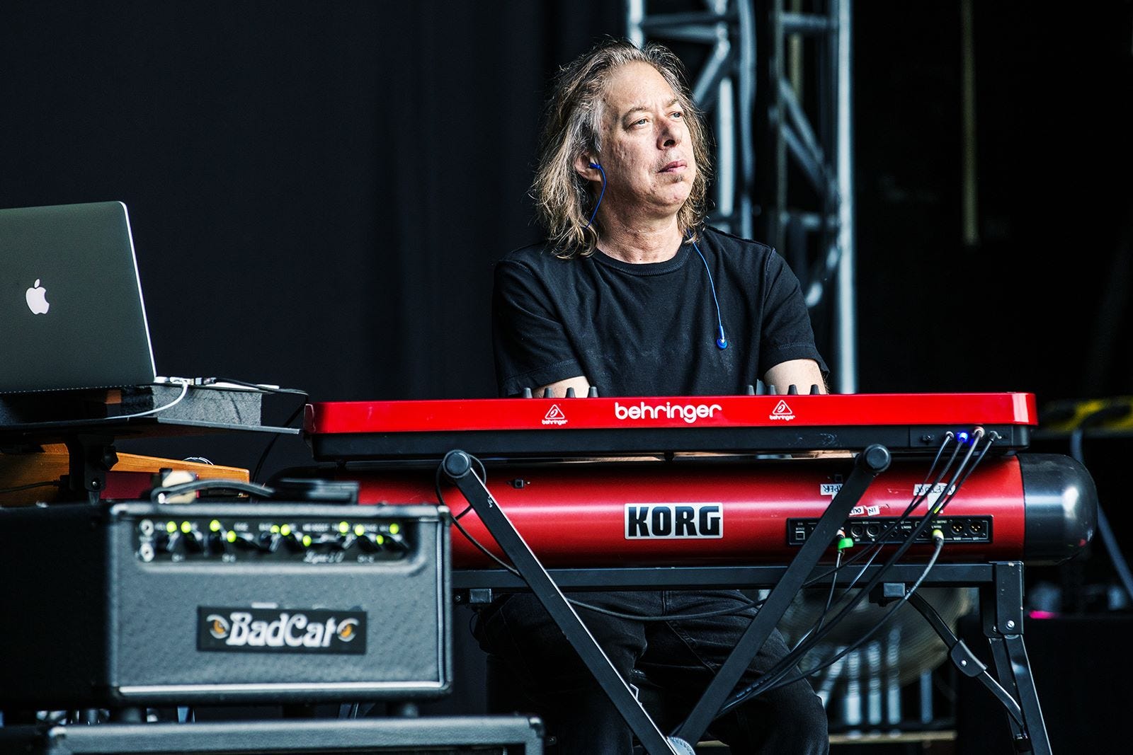 Hajo Mueller captured some special moments before and during the Kunst!Rasen open air show in Bonn last week. After being glorious weather during the day, a storm arrived in the evening, resulting in the band performing to a sea of pink kagools - but still a great time was had by all, thanks to the audience for not allowing the weather to dampen their enthusiasm!