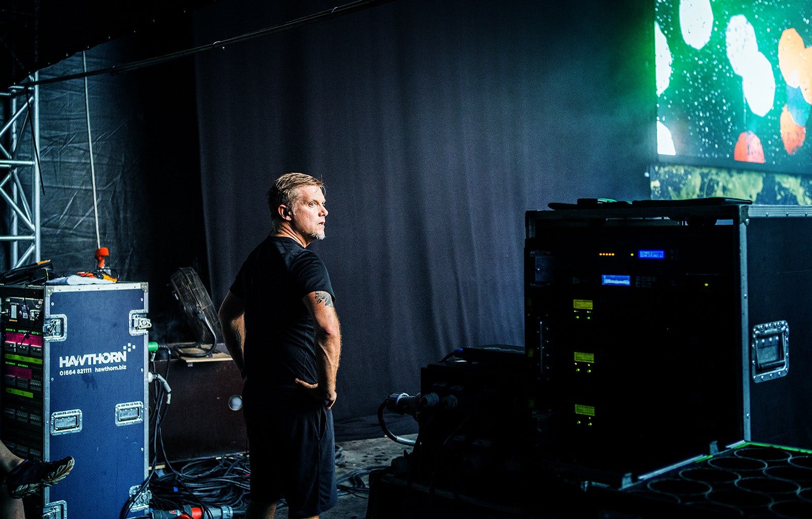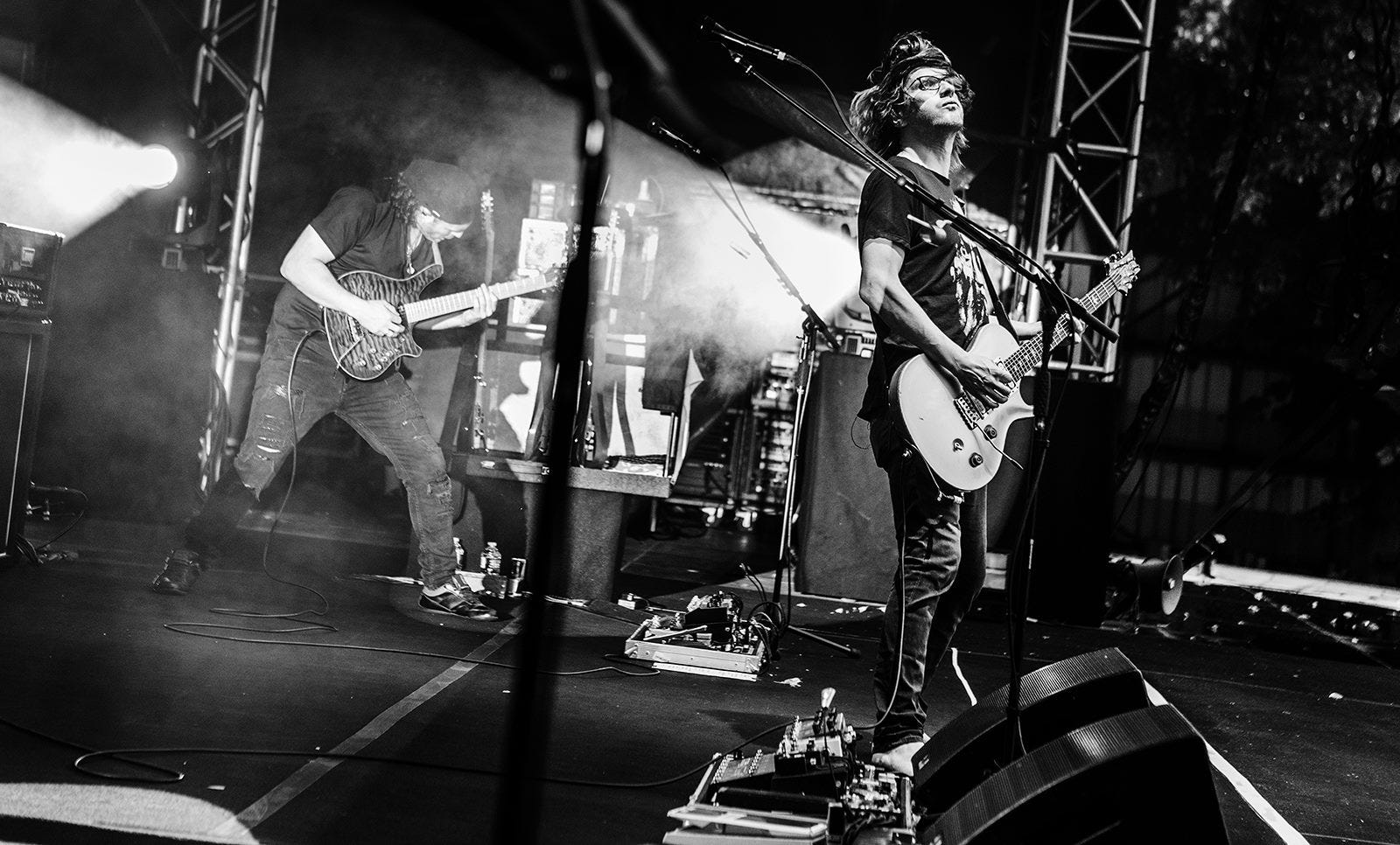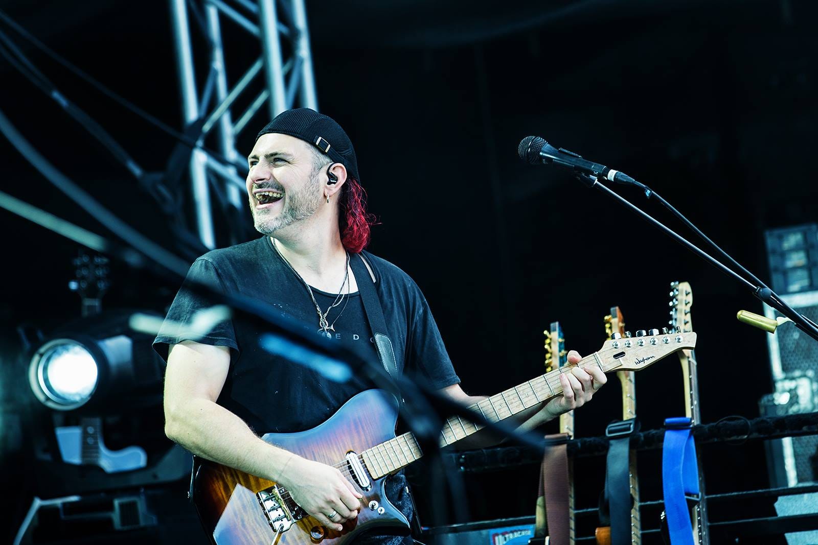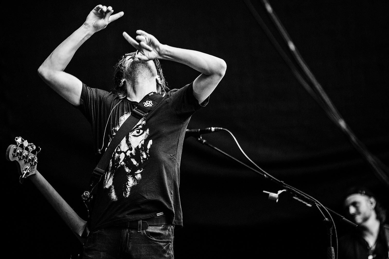 Hajo Mueller captured some special moments before and during the Kunst!Rasen open air show in Bonn last week. After being glorious weather during the day, a storm arrived in the evening, resulting in the band performing to a sea of pink kagools - but still a great time was had by all, thanks to the audience for not allowing the weather to dampen their enthusiasm!